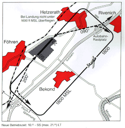An- und Abflugrichtungen erkennt man sehr gut auf dieser Karte, die auch im Tower ausliegt und von allen Piloten, die hier starten und landen wollen beachtet werden muß.