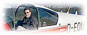Auf der Online-Ausgabe des Volksfreundes kann man den Artikel auch nachlesen. Dort sieht man auch ein Bildchen unseres Kurses um eine Robin HR 200 versammelt. Mich sieht man (leider) nur undeutlich hinter der Scheibe versteckt.09.09.99 - YEAH Heute abend wieder Luftrecht-Unterricht gehabt. Joe kam vorher kurz vorbei, wir mußten eine Anmeldung für die Bezirksregierung Trier ausfüllen, als zuständige Landesluftfahrtbehörde will die natürlich wissen, wer da so alles fliegen lernen will. Dann fragte er "Was machst Du denn am Samstag?". Ich (schon ahnend): "Ähhh....nix" Jo: "Na dann fliegen wir am Samstag um 15.00 Uhr". Ich: "Hurra". Den ganzen Abend war ich super drauf, voller Vorfreude und auch als ich dann später wieder zuhause war ging ich lieber mit zwei Freunden noch eins, zwei Bier trinken anstatt ins Bett. 11.09.99 - Der erste Flug Heute war es soweit: Meine erste Flugstunde!